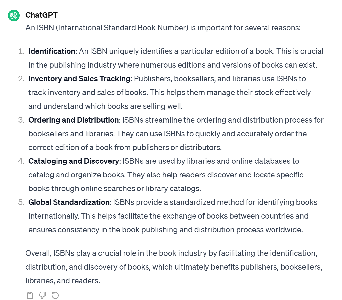 Books need ID numbers. This where the ISBN comes into play.